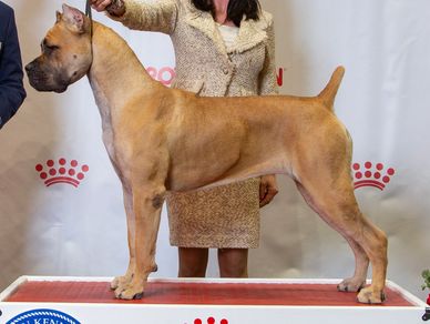 Riot is a daughter of GCH Junior World Winner 15' Multi CH International CH Star Karuna's Raptor (Son of 2016 World Winner, Star Karuna's Titan) × GCH Multi CH International CH Star Karuna's Italian Temptation, 2020/2021 #1 Bitch in Russia, #2 overall dog in Russia 2020.